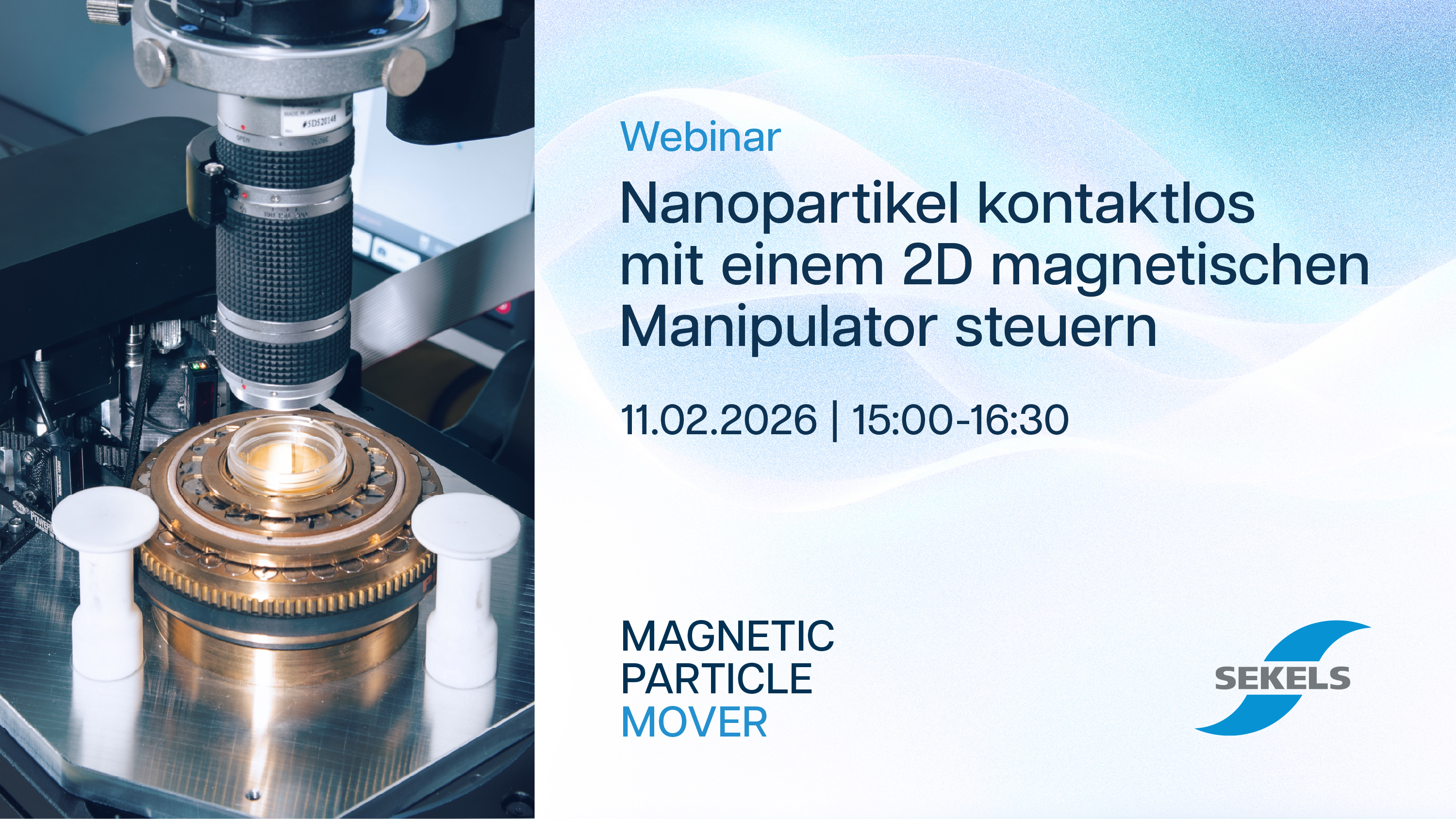 Am 11.02.2026 um 15 Uhr zeigen wir, wie Nanopartikel und mikromagnetische Objekte kontaktlos gesteuert werden können – in der Ebene und im dreidimensionalen Raum. Diese Technologie eröffnet völlig neue Möglichkeiten in Biowissenschaften und der Mikro- und Nanotechnik. Neben den Use-Cases erhalten Sie einen Technik-Deep-Dive. Kostenlos, begrenzte Plätze.